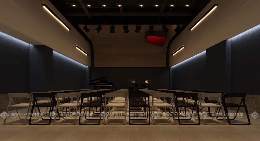 细节之处的艺术点缀,亦能照亮空间文学意境。色彩与光影的时空交互,让空间形态的美学继续呈现。弹响钢琴,曼妙音乐,与景共情,仿如一部情节温润的老式电影。教室宽敞高大,保证声音立体环绕,余音绕梁,以暖色为主...